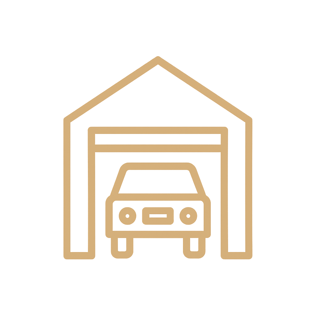 Eine überdachte Garage ist ganz in der Nähe verfügbar.